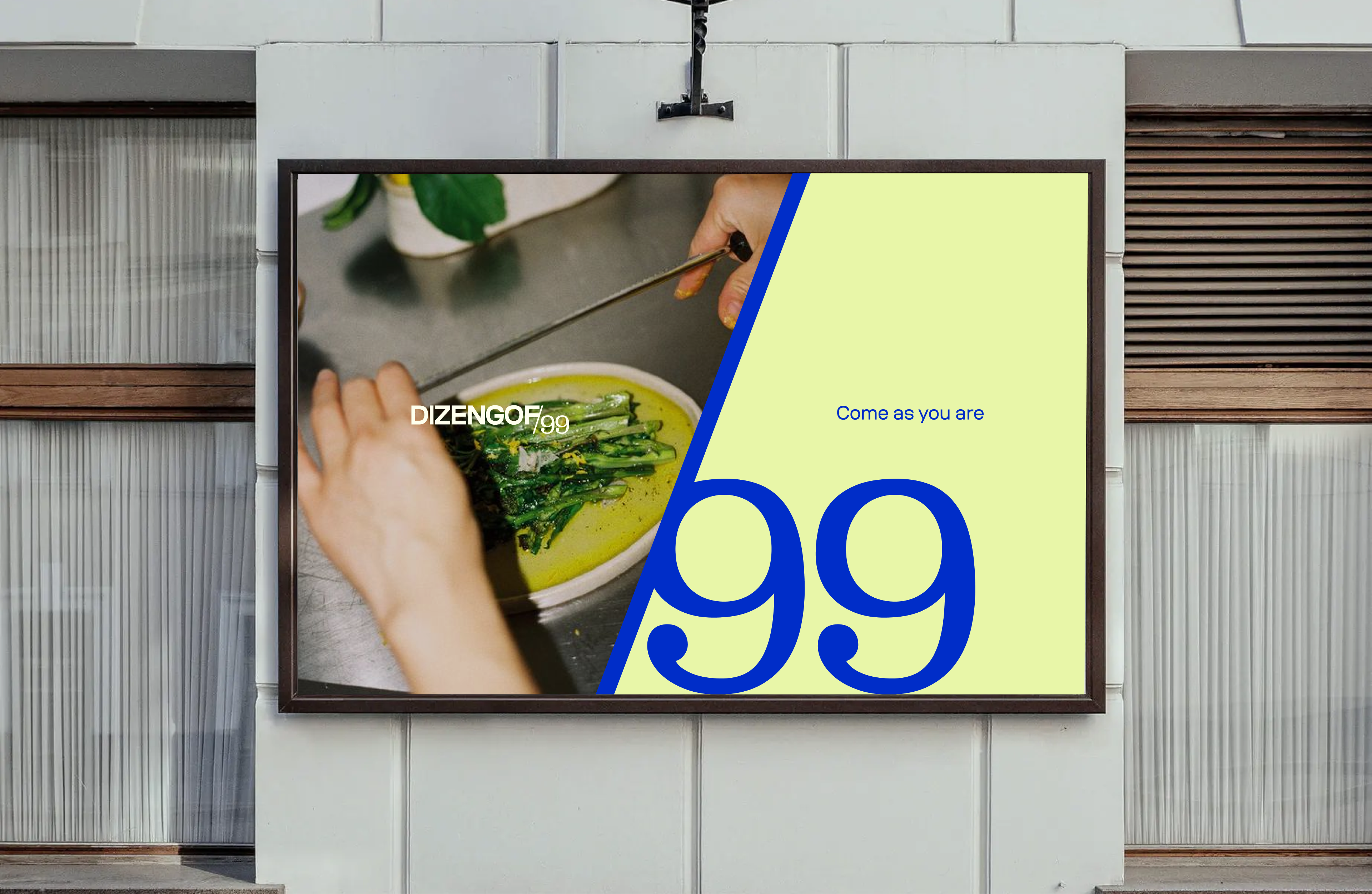 Dizengof/99 is a branding concept for an Israeli restaurant in the center of Moscow, developed as part of a client project at Tuman Studio.